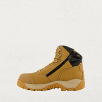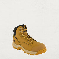 * Non-metallic 200J safety toe meets AS/NZS 2210.3:2009 standards. Tuff-Tee leather toe guard resists holes, snags and abrasions.